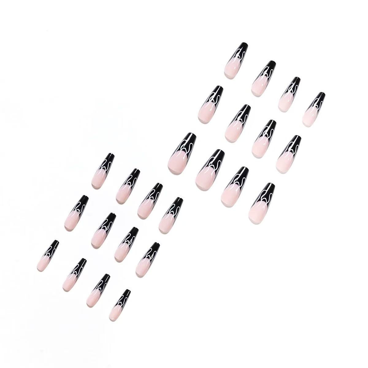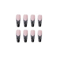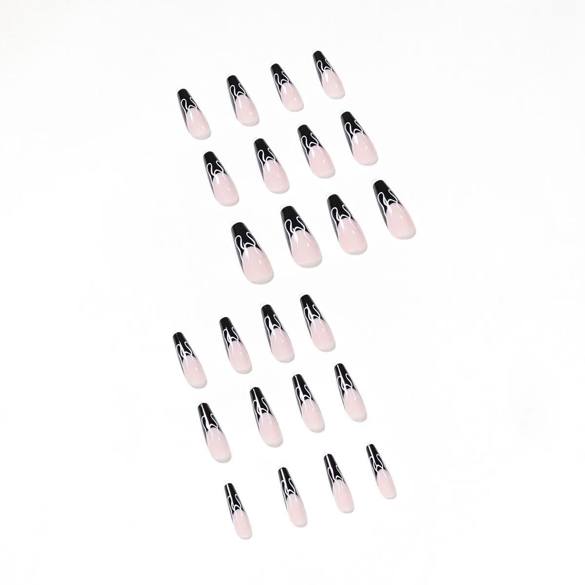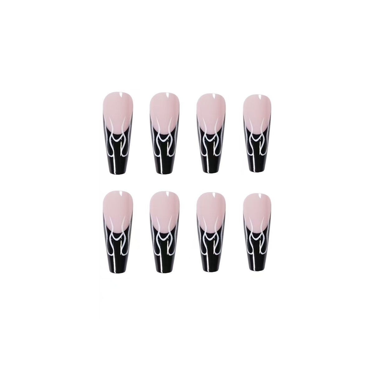 24 Pcs Black - Light Pink - White Patterned Stylish Long Nails