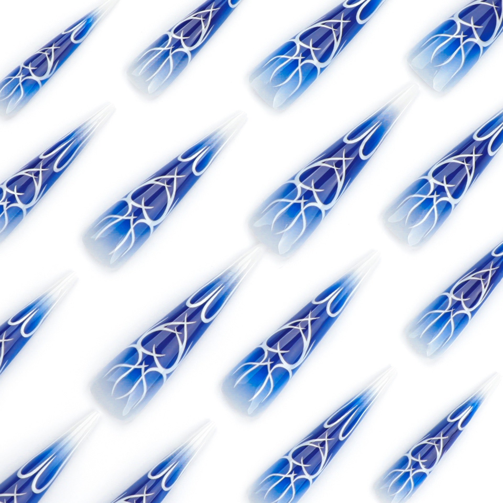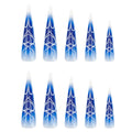 24 Pcs Blue - White Gradient Patterned Pointed Nails
