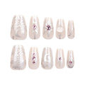 24 Pcs Light - beige Silver - pattern Pink - diamond Dreamy Nails