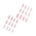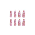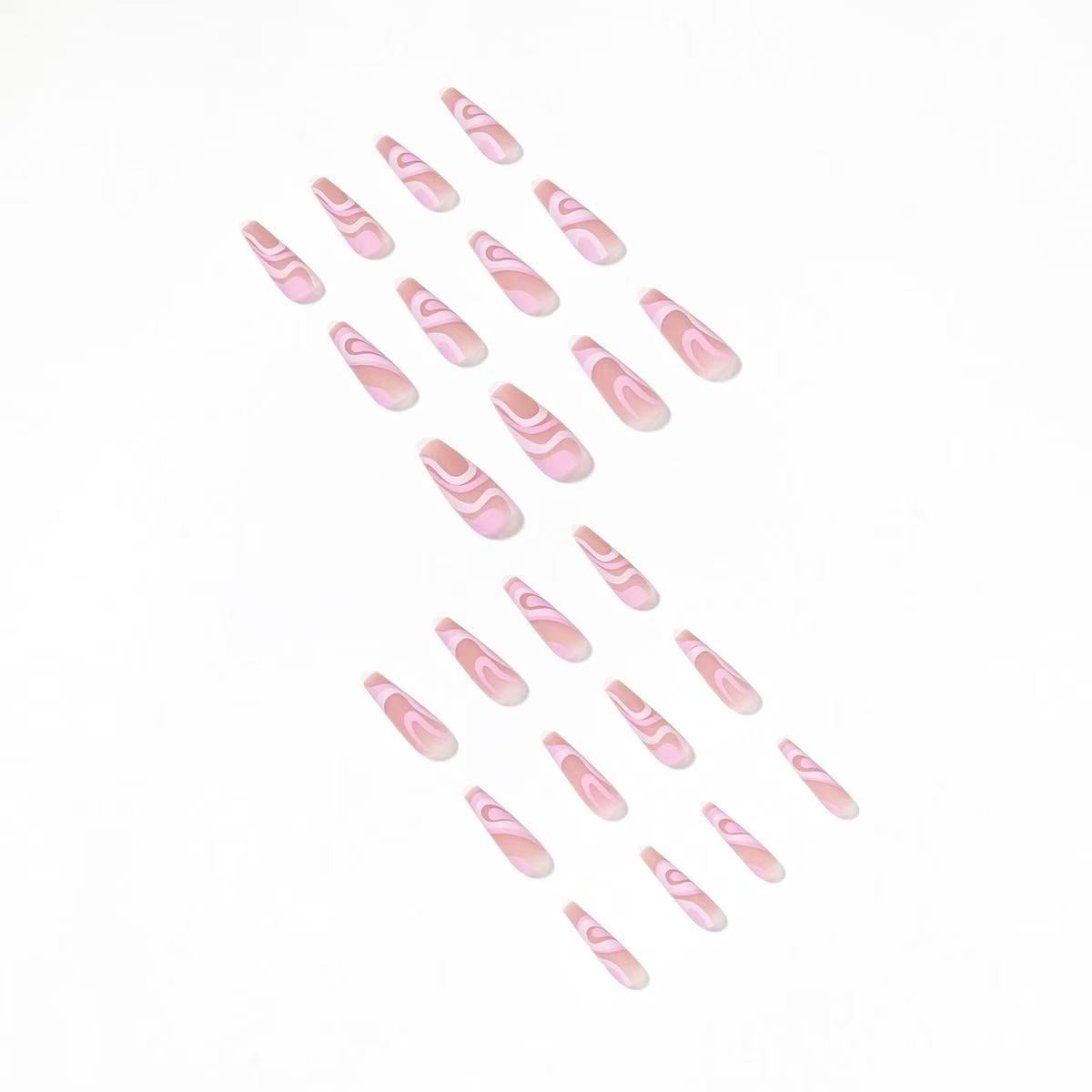24 Pcs Pink - White Wave Pattern Elegant Long Nails